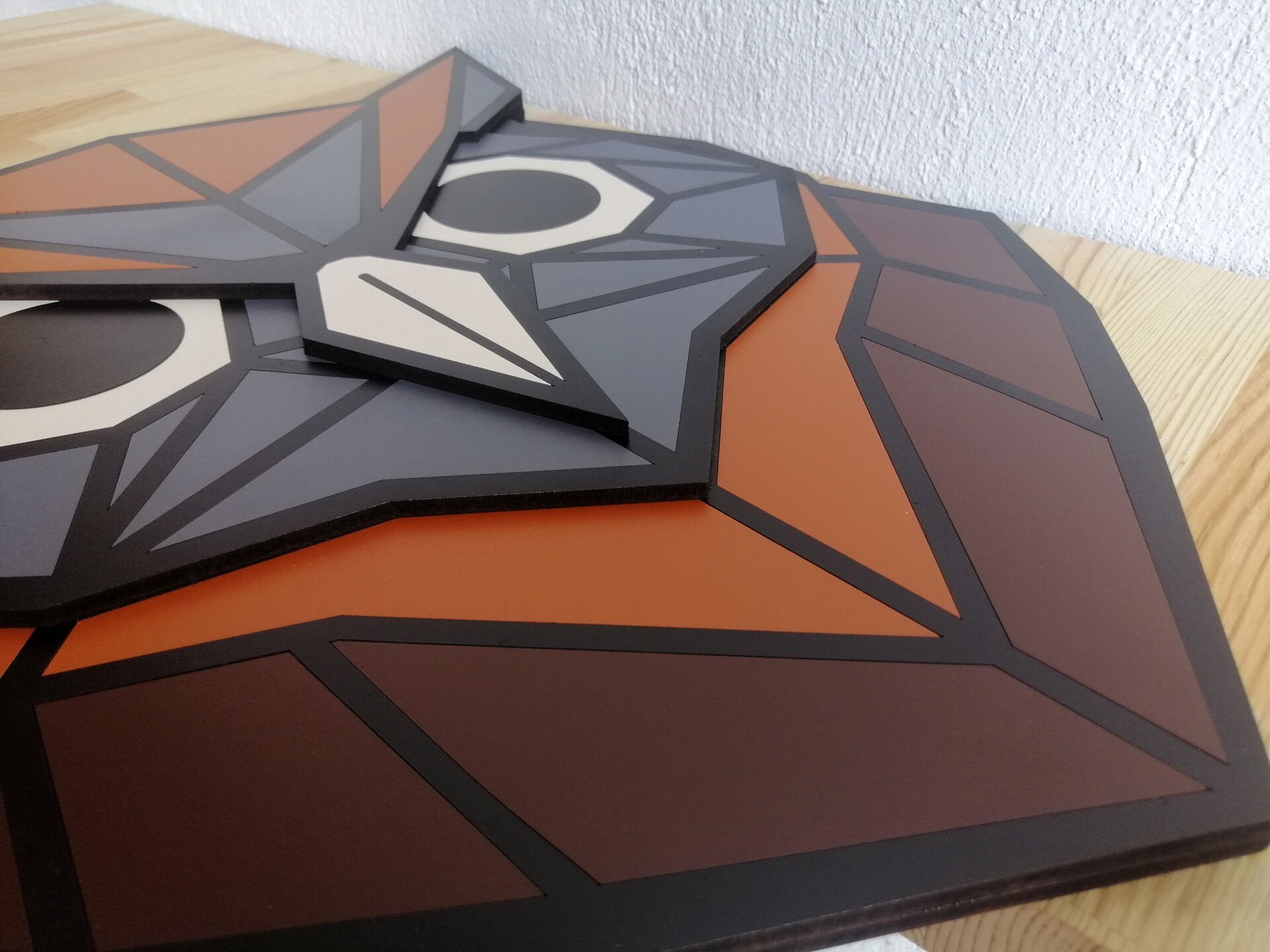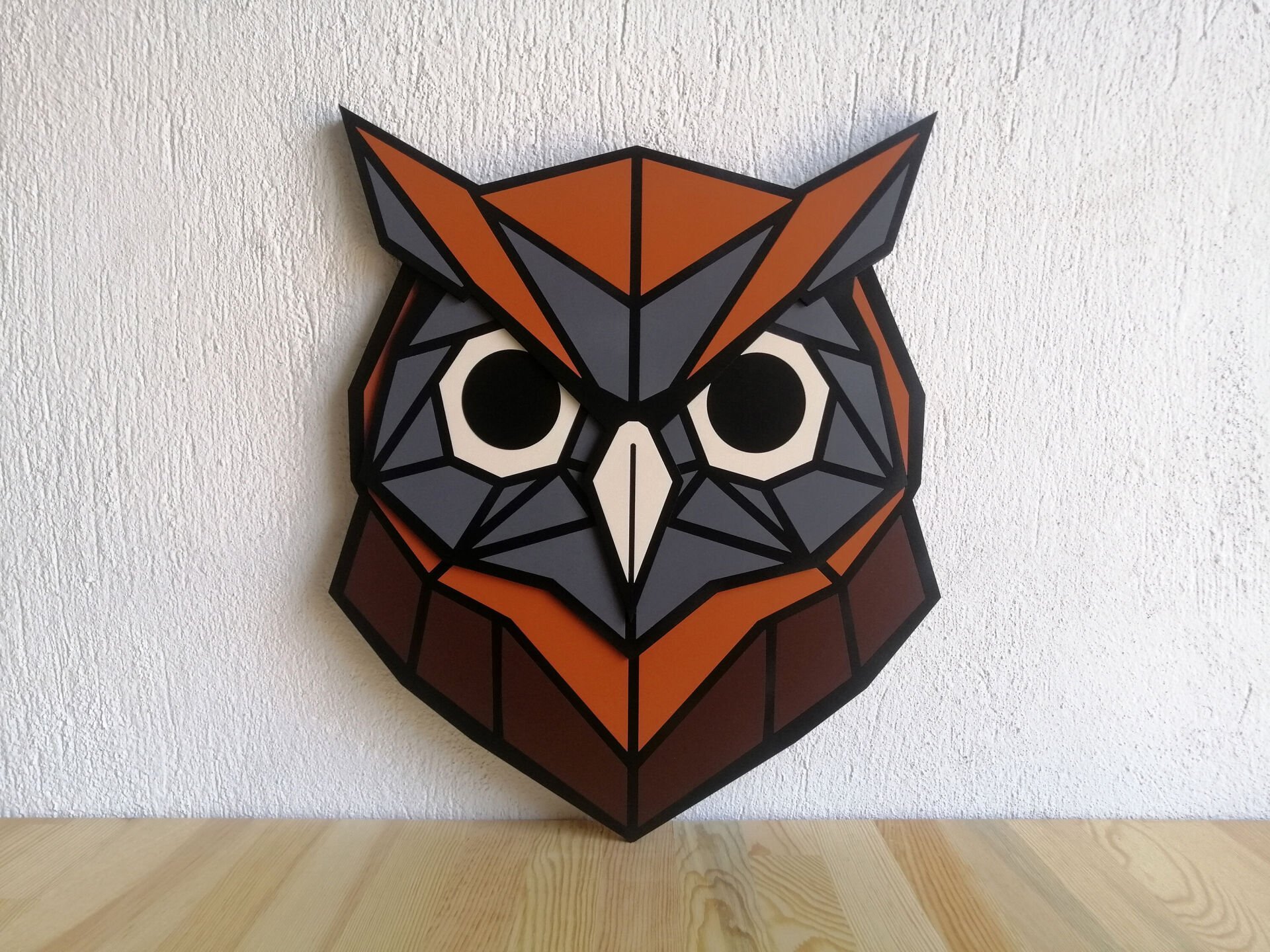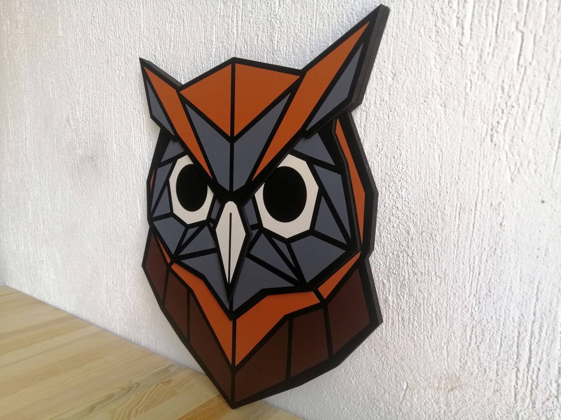 Agna – Geometrik Baykuş Figürlü MDF Ahşap Katmanlı Duvar Dekoru | El Boyama & Lazer Kesim