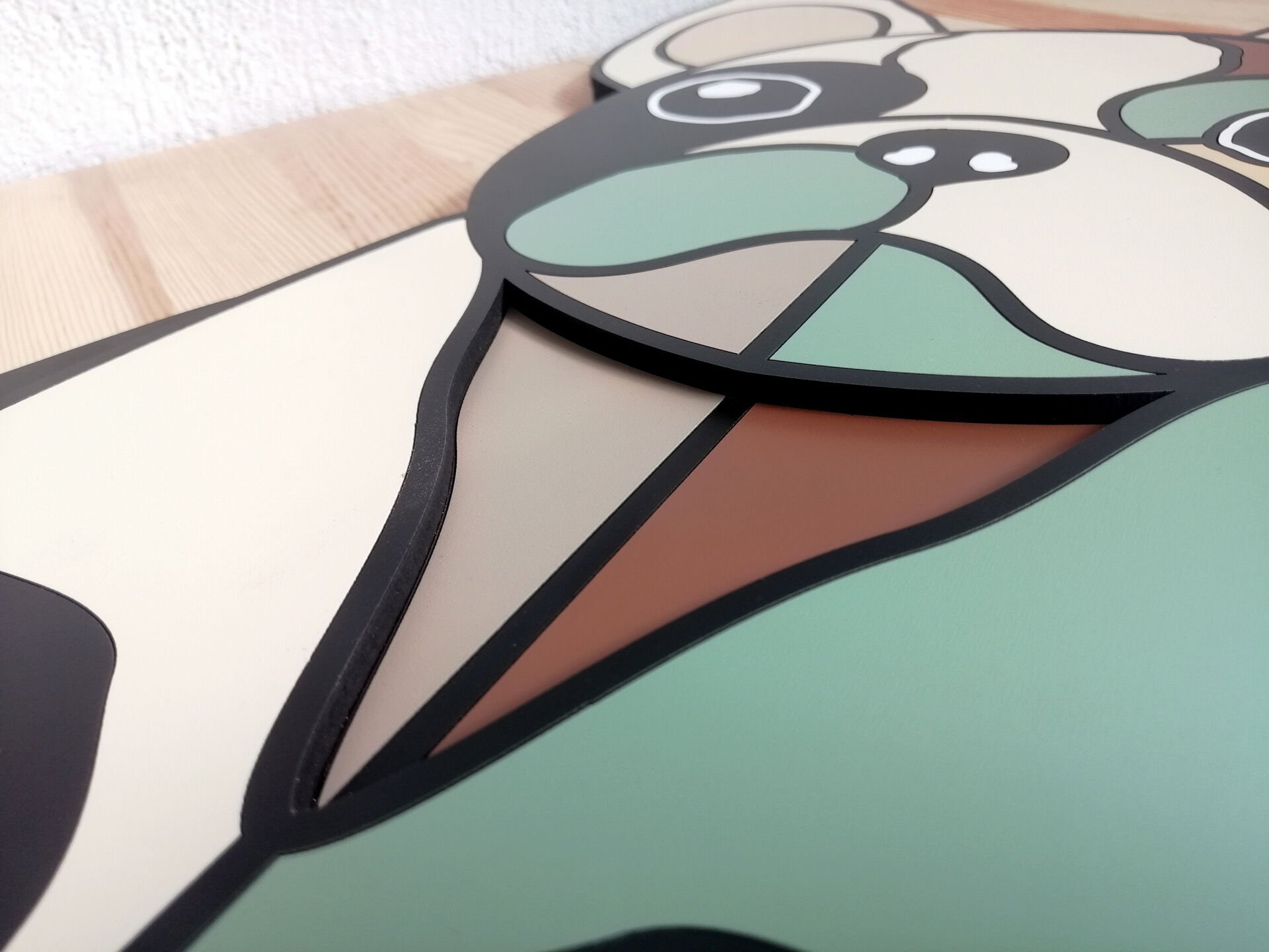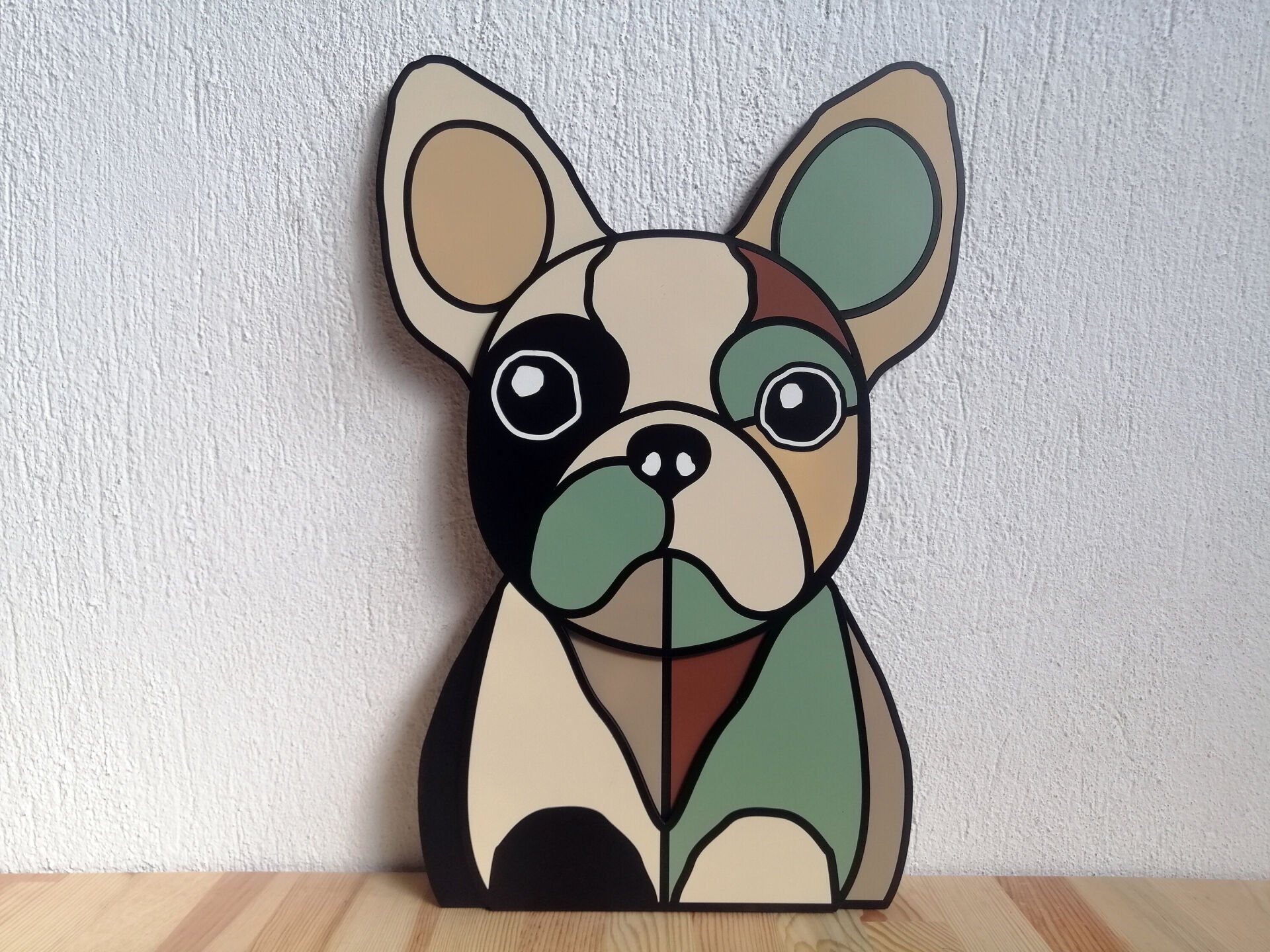 Evinize sevimli ve modern bir dokunuş katacak "Fiona" ile tanışın! Geometrik çizgiler ve özenle seçilmiş renk paletiyle tasarlanan bu eşsiz köpek duvar dekoru Fransız Bulldog'unuzun veya en sevdiğiniz ırkın stilize bir temsilini sunar.