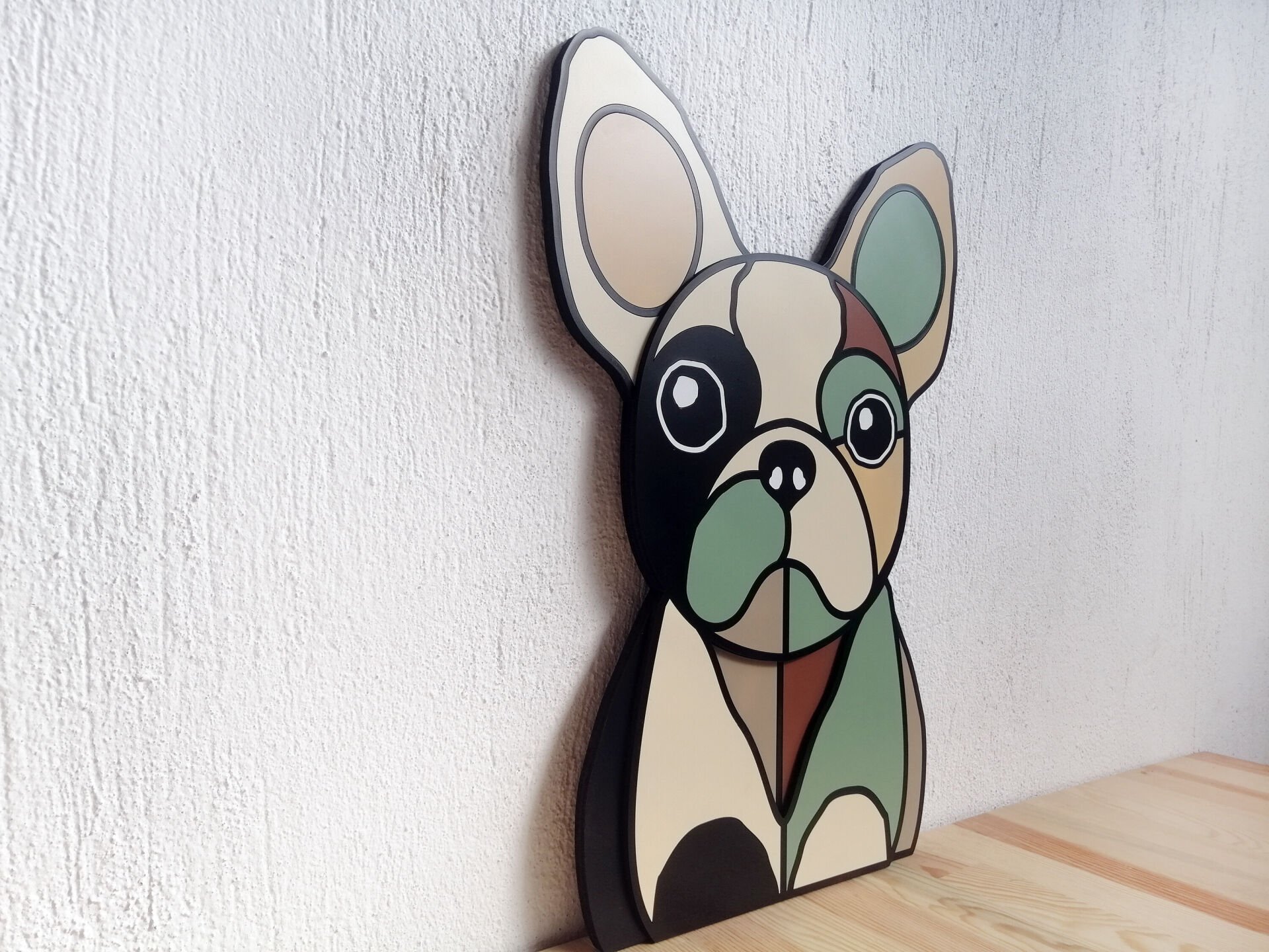 Fiona – Fransız Bulldog Figürü MDF Ahşap Katmanlı Duvar Tablo | El Boyama & Lazer Kesim