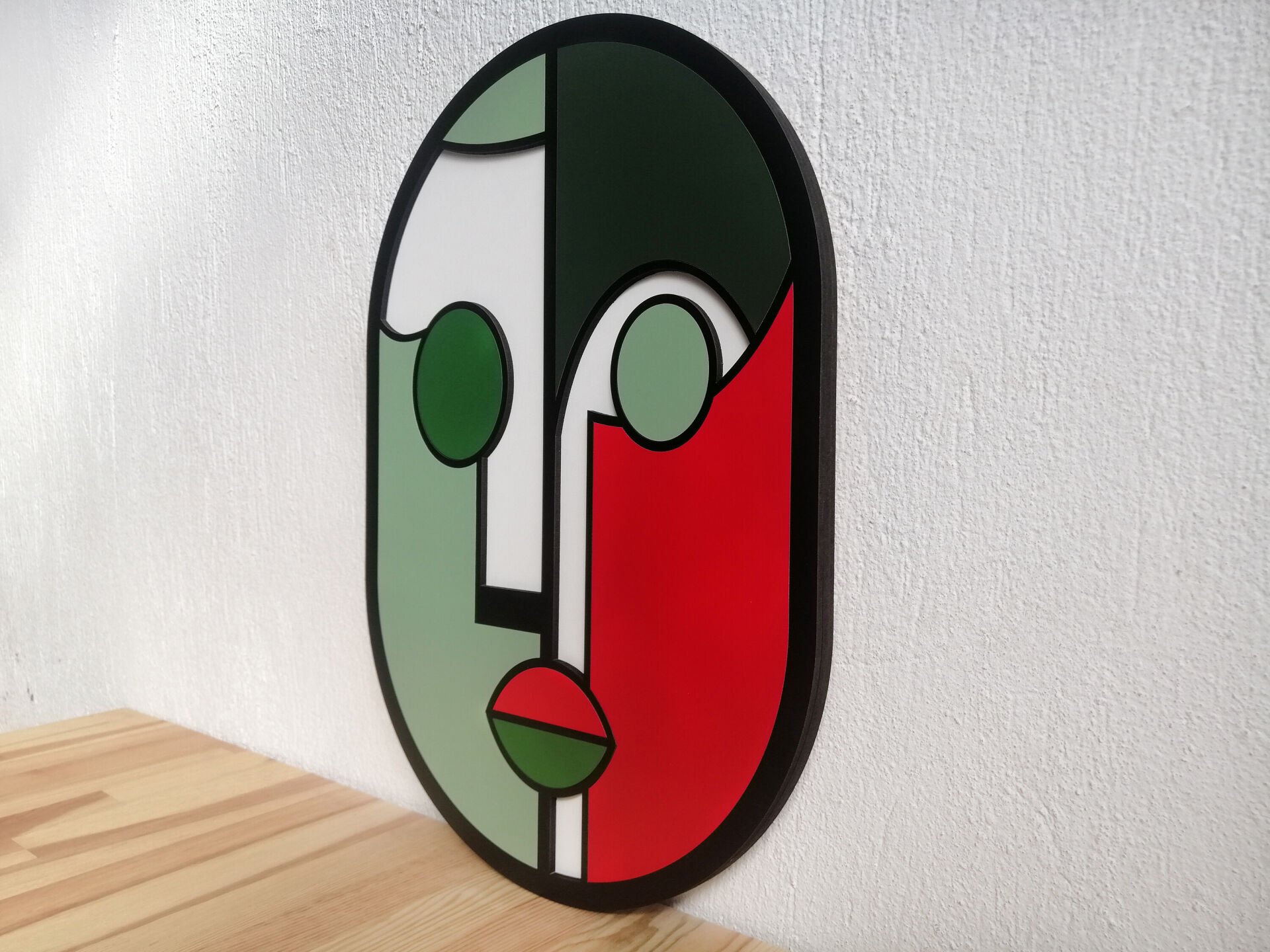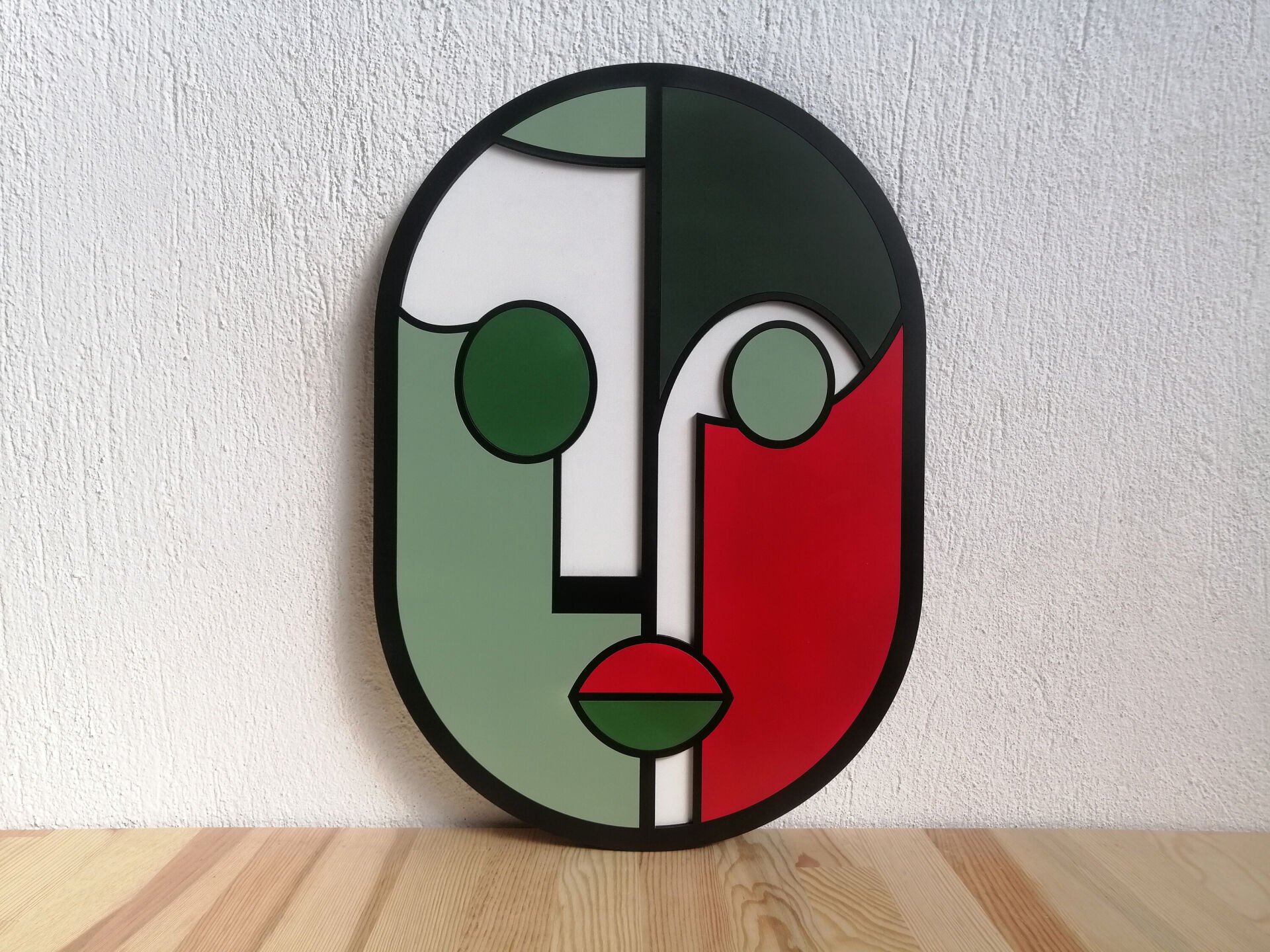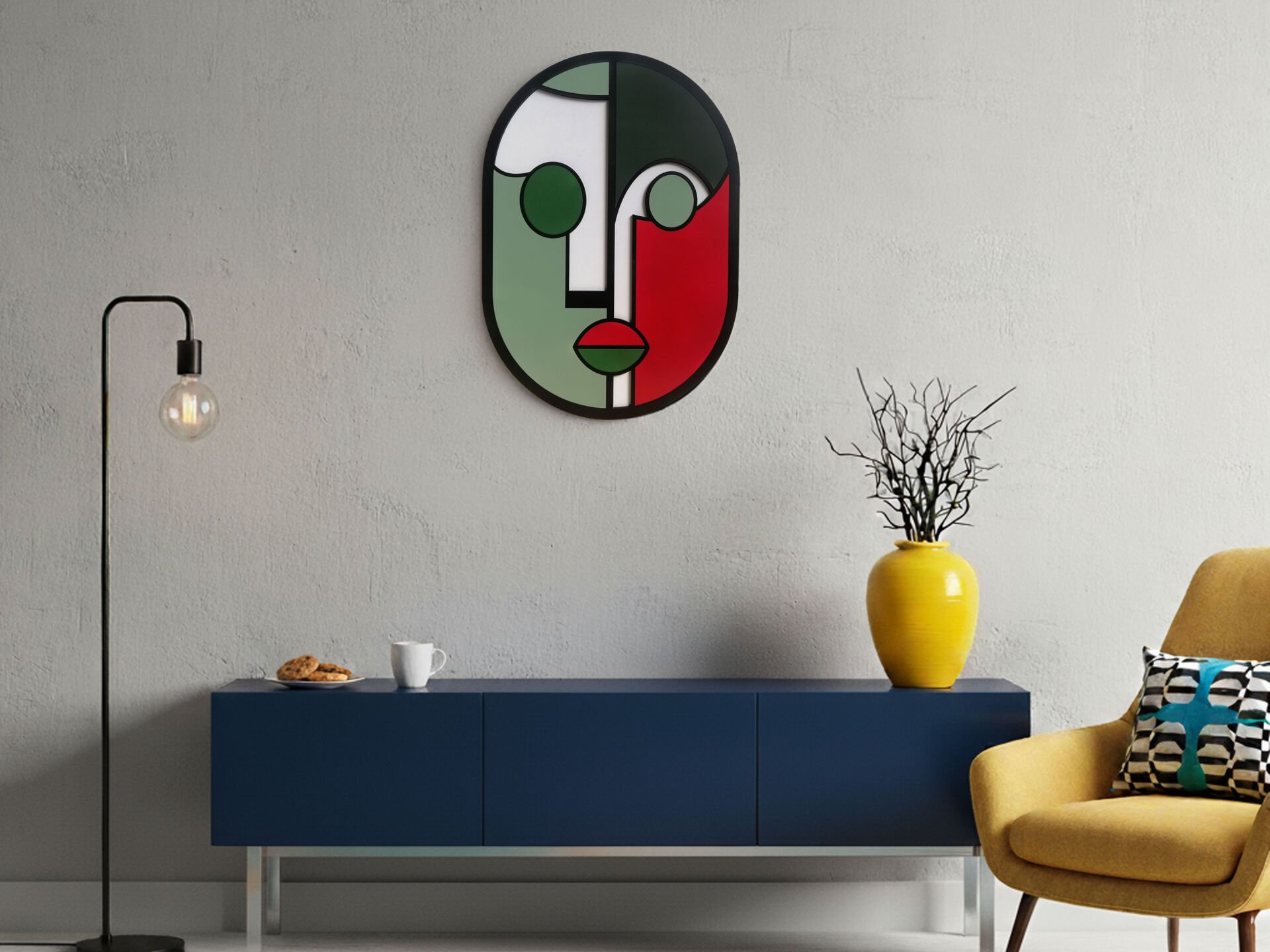 Gred – Zıt Renklerin Yüzü MDF Ahşap Katmanlı Duvar Tablosu | El Boyama & Lazer Kesim