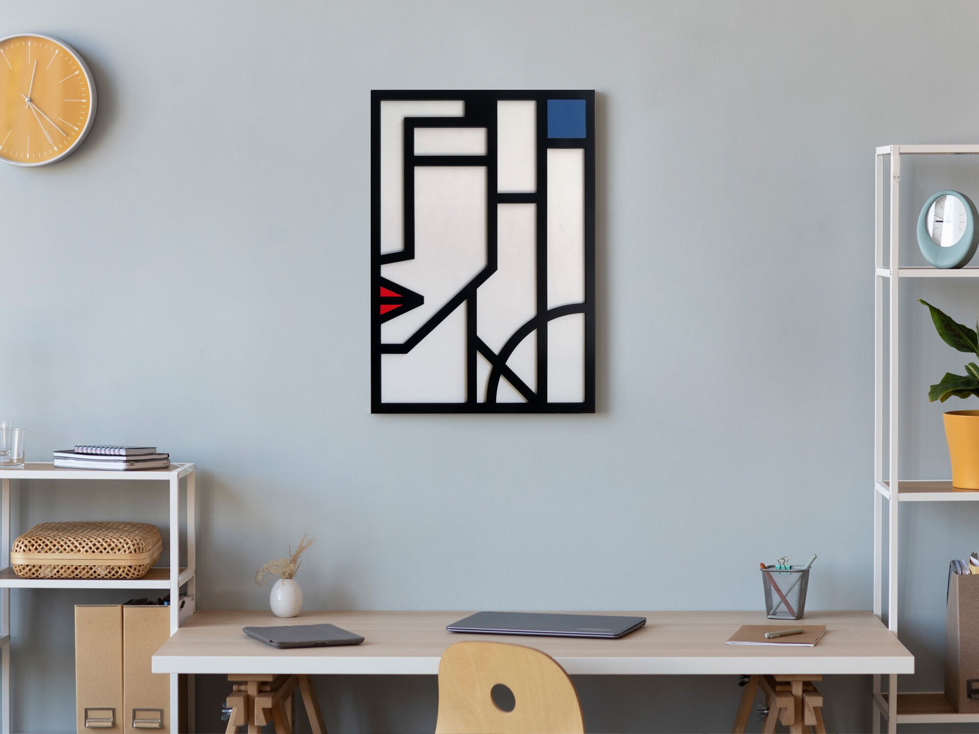 Mirae – Modern Geometrik MDF Ahşap Katmanlı Duvar Tablosu | El Boyama & Lazer Kesim