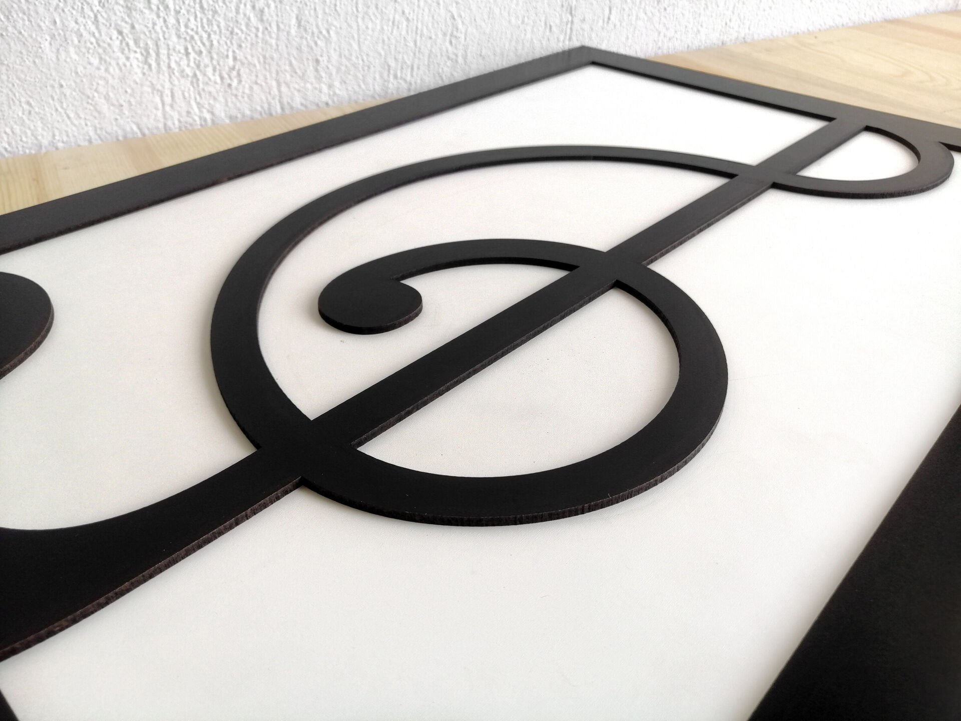 Treble Clef – Müzik Temalı Siyah Beyaz MDF Ahşap Katmanlı Duvar Tablosu | Lazer Kesim