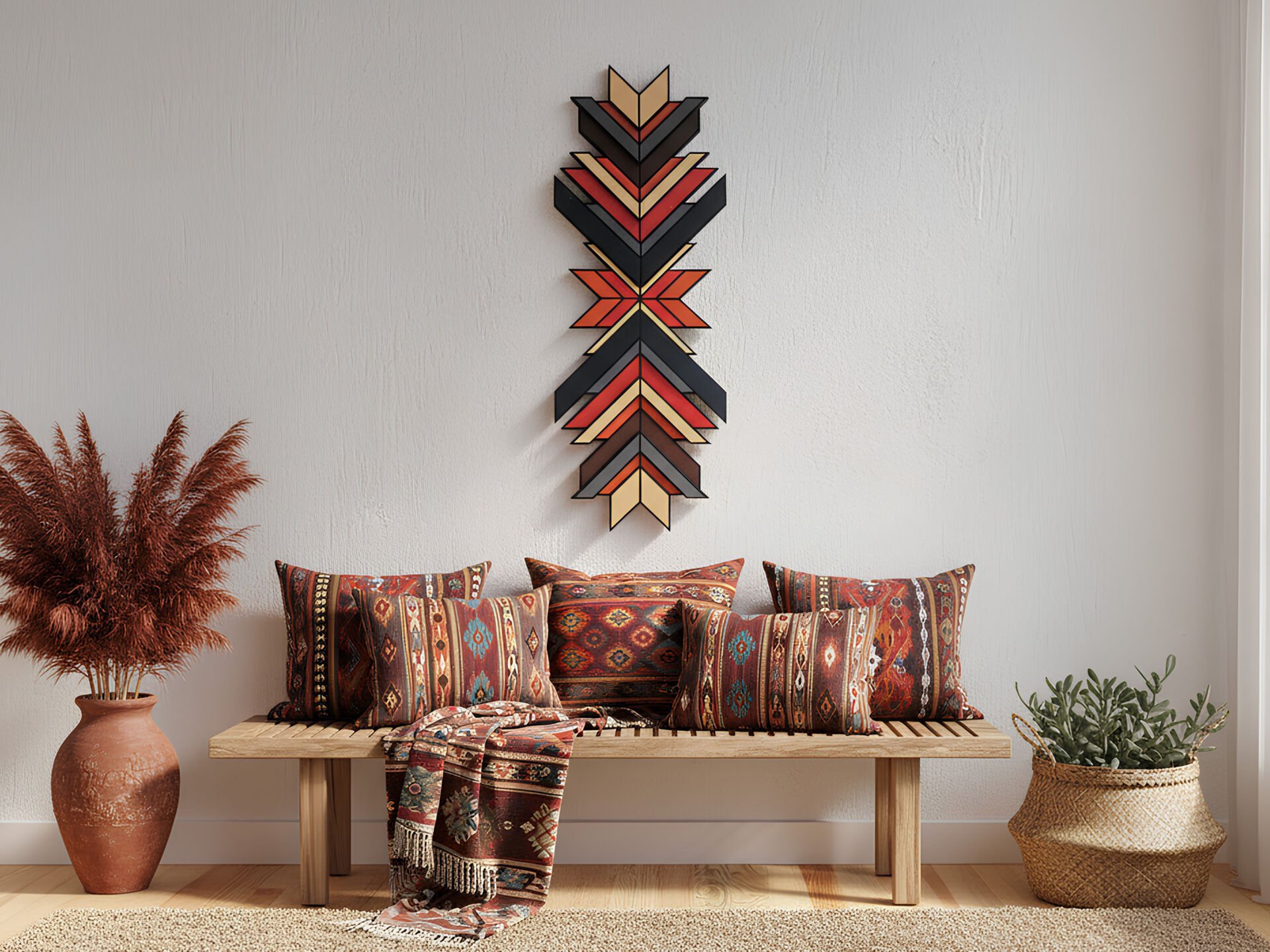 Vireka – Etnik Desenli MDF Ahşap Katmanlı Duvar Dekoru | El Boyama & Lazer Kesim